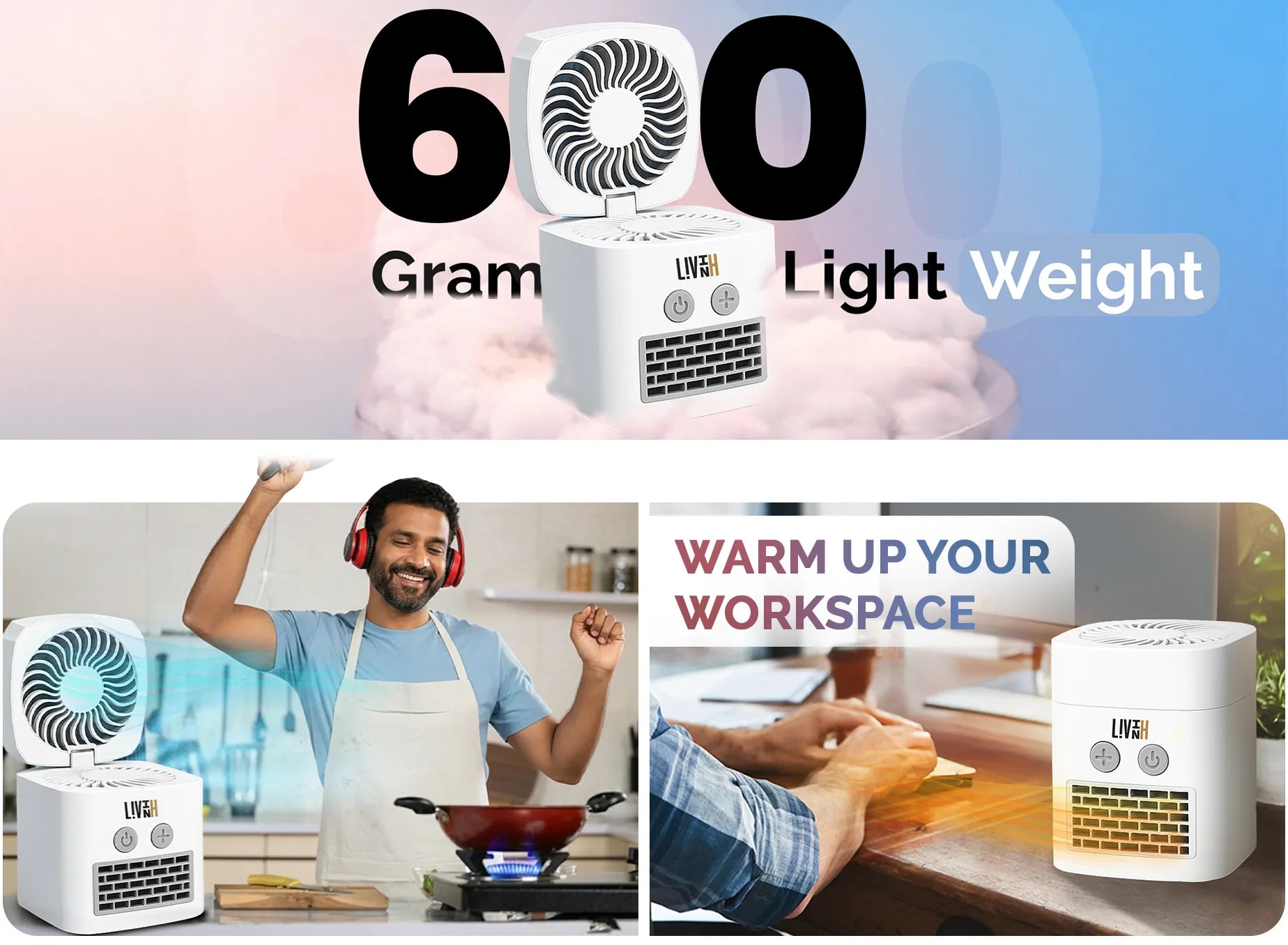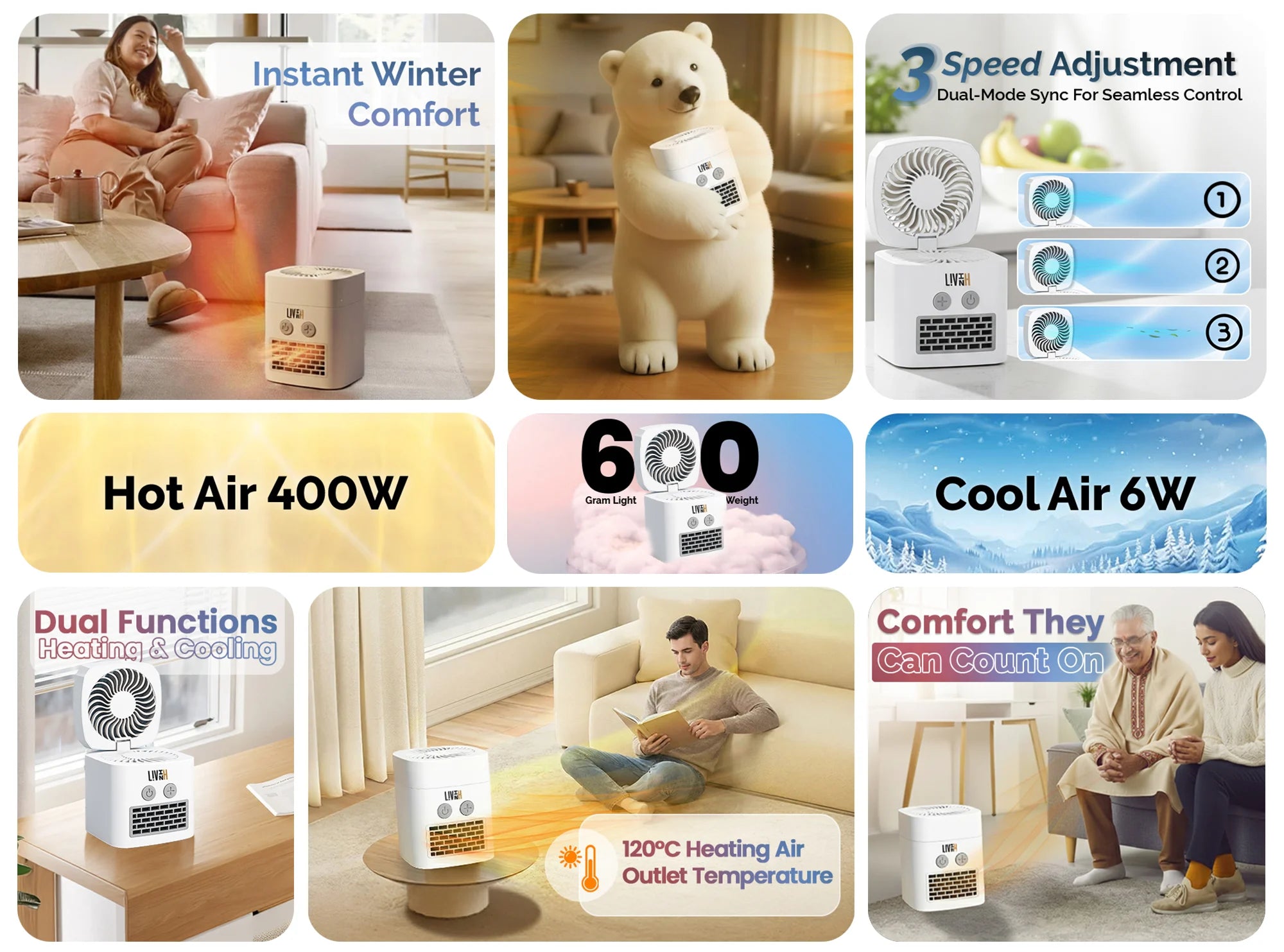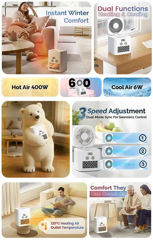 Simply lift the lid for cooling mode or close it for heating mode.