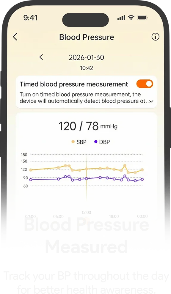 No screen; designed for distraction-free continuous health data.